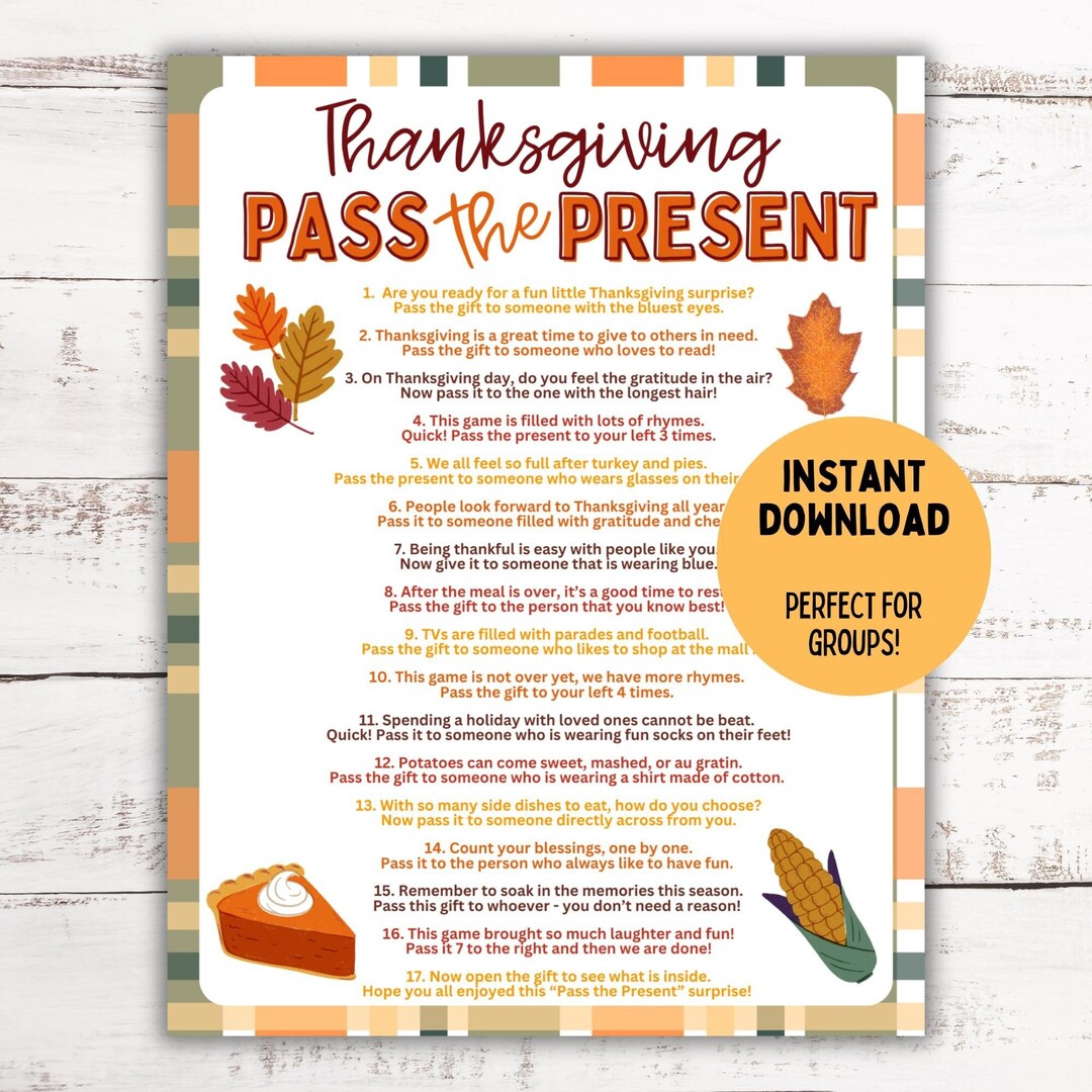 Thanksgiving Pass the Present Game Thanksgiving Game Etsy